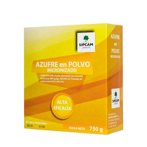 🧪 Azufre Micronizado 750 gr. Sipcam es un fungicida natural en polvo con partículas ultrafinas que facilita su disolución y acción rápida. Ideal para controlar mildiu, oídio y ácaros en cultivos diversos, su formulación micronizada asegura una cobertura eficaz y duradera. Un aliado fiable para mantener la salud de tus plantas sin residuo químico agresivo. 🌿