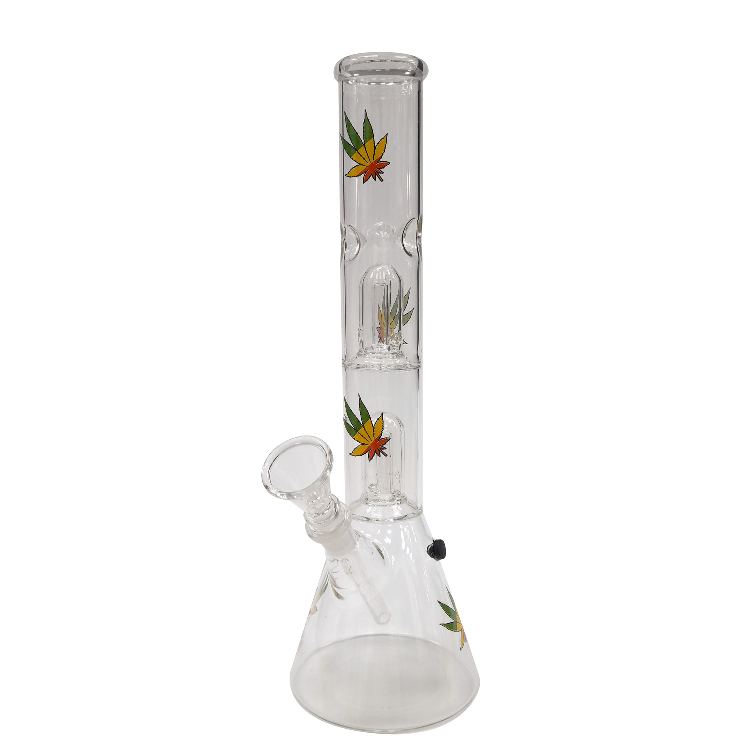 Bong Cristal Doble Percolator Ice Rasta Leaves 30 cm.