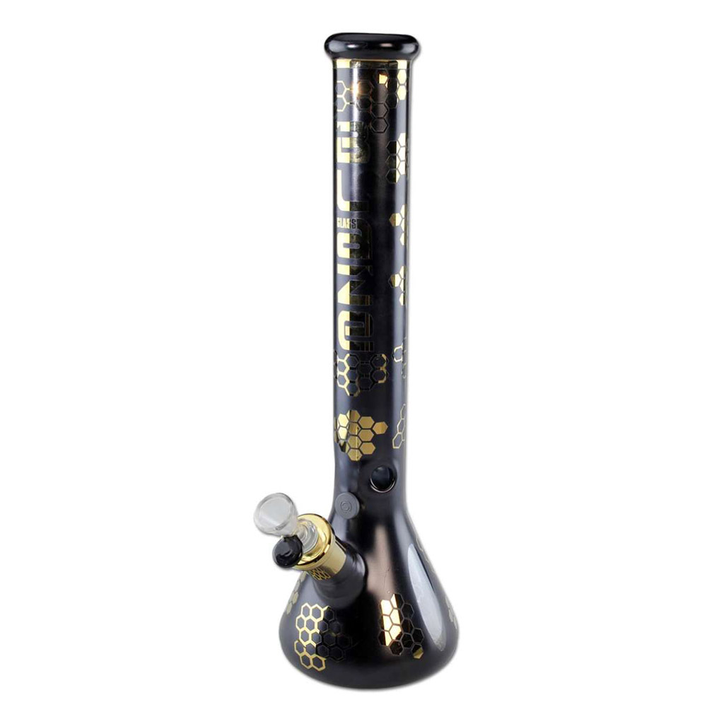 Este bong de 45 cm destaca por su estructura de vidrio borosilicato, resistente y duradera, que garantiza una experiencia limpia y sin sabores extraños. Su cámara ice incorpora muescas para retener cubitos de hielo, enfriando el humo y suavizando cada calada. El acabado en dorado y antracita le da un toque distintivo, perfecto para quienes valoran tanto la estética como la funcionalidad en su parafernalia.