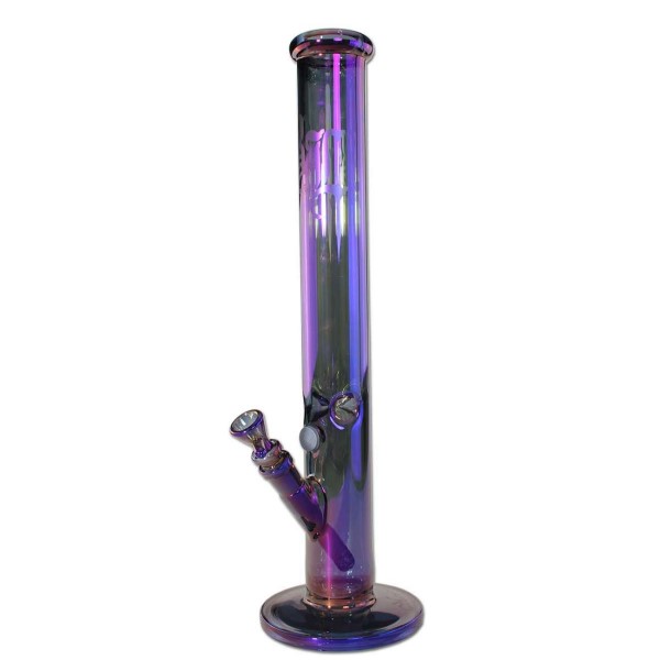 El Bong Cristal Ice Iris Púrpura 45 cm destaca por su vidrio borosilicato de alta calidad, un material resistente al calor y fácil de limpiar. Su cámara con muescas para hielo permite enfriar el humo, suavizando su paso y reduciendo la aspereza, lo que mejora la experiencia en sesiones prolongadas. El acabado irisado púrpura aporta un aspecto moderno y elegante, ideal para quienes valoran tanto la estética como la funcionalidad.