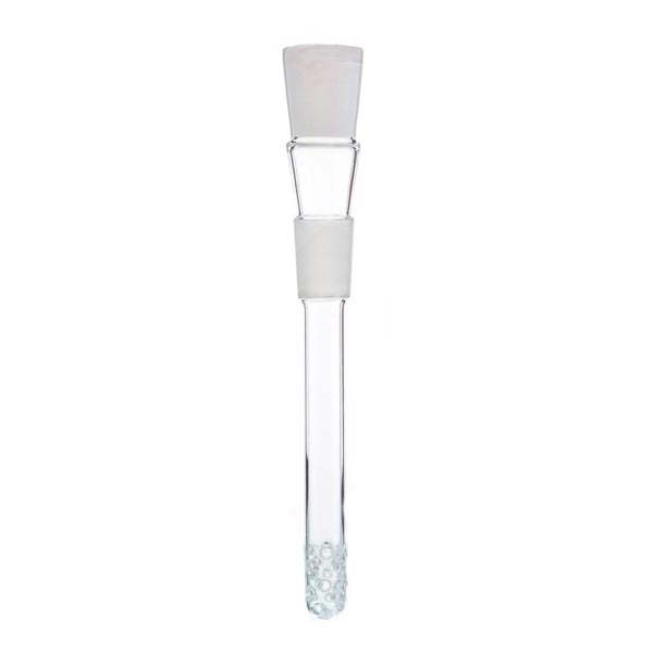 Fabricado en cristal de alta calidad, este down tube es resistente y fácil de limpiar, manteniendo la pureza del sabor sin añadir sabores extraños ni residuos. Su tamaño estándar 14×100 mm asegura compatibilidad con una amplia variedad de bongs, haciendo que su instalación sea sencilla y estable.