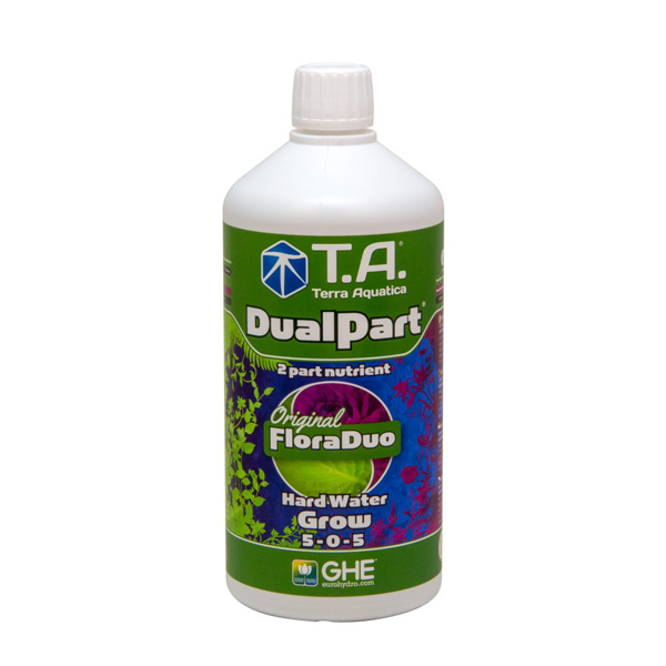 DualPart Grow Agua Dura de Terra Aquatica es el fertilizante perfecto para aguas duras. Su NPK equilibrado y activadores ecológicos garantizan un crecimiento sano y resistente. 💧🌱 ¡Dosis fácil y resultados visibles desde el primer uso!
