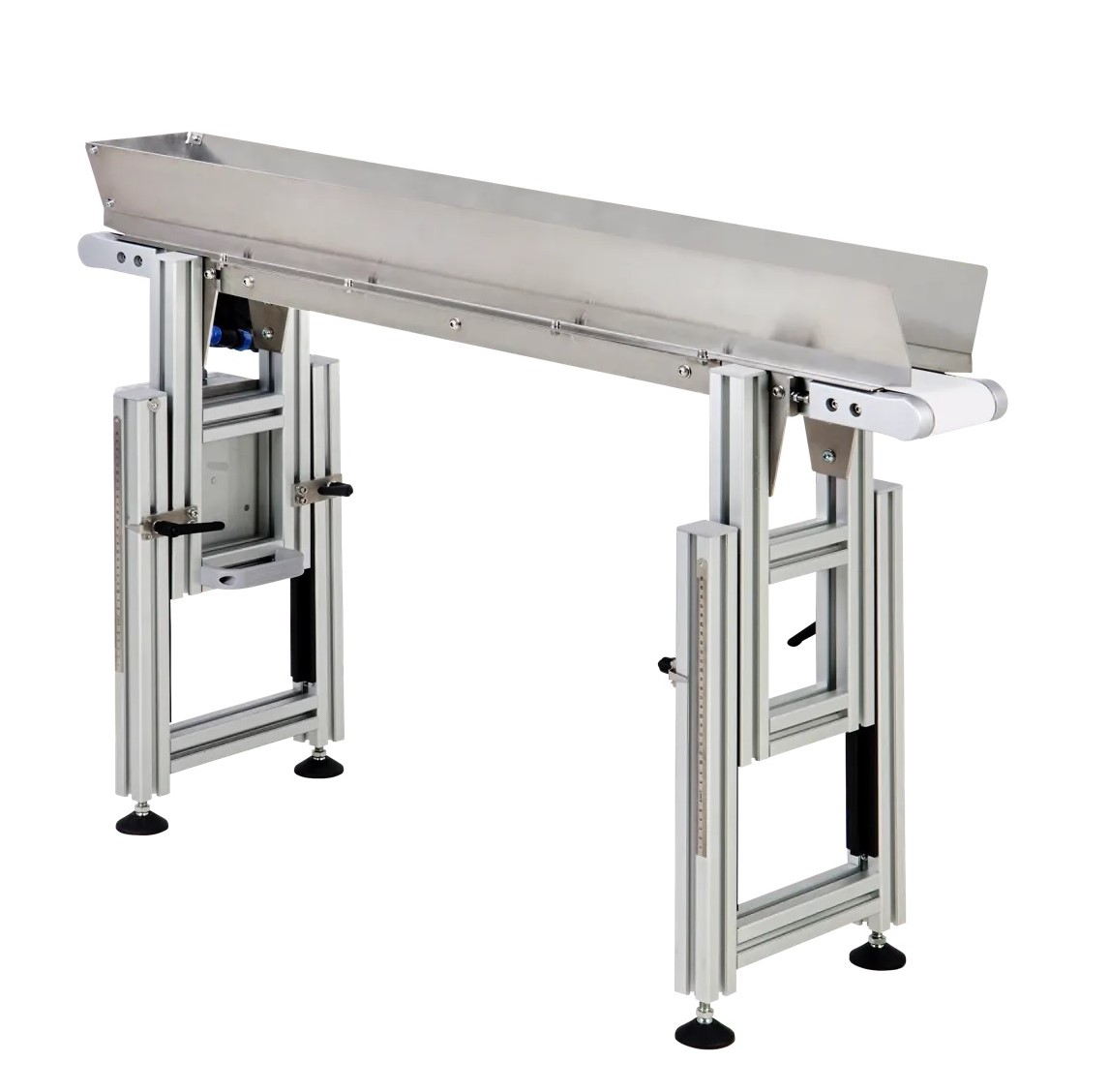 El diseño modular permite una limpieza rápida entre turnos, lo cual es imprescindible en salas de procesamiento donde se manejan múltiples variedades. Las cintas son accesibles y fáciles de desmontar para su desinfección, y los controles son simples e intuitivos: basta con ajustar la velocidad desde el potenciómetro para sincronizar con el flujo de trabajo deseado.