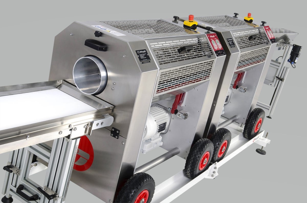 La MT Tumbler 500 de Master Trimmer es una de las peladoras automáticas más avanzadas del mercado europeo. Diseñada para procesos a gran escala, esta máquina combina la precisión del corte manual con la velocidad de un sistema automatizado, gracias a su molinete con 11 cuchillas y un tambor robusto de acero inoxidable 304.