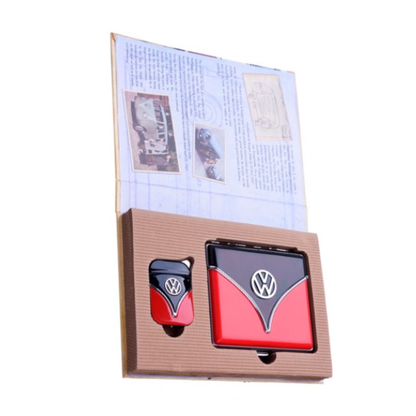 Este mechero con pitillera de estilo vintage rescata la esencia de la famosa marca Volkswagen, evocando épocas pasadas con un acabado cuidado y detalles que llaman la atención. Su estructura robusta garantiza durabilidad, mientras que su estética clásica lo convierte en un objeto coleccionable y práctico a la vez.