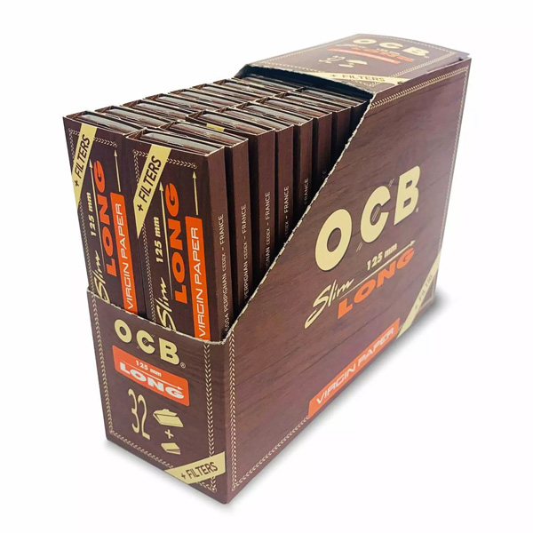Papel de fumar OCB King Size Slim Virgin Long & Tips 125 mm. 32 librillos
