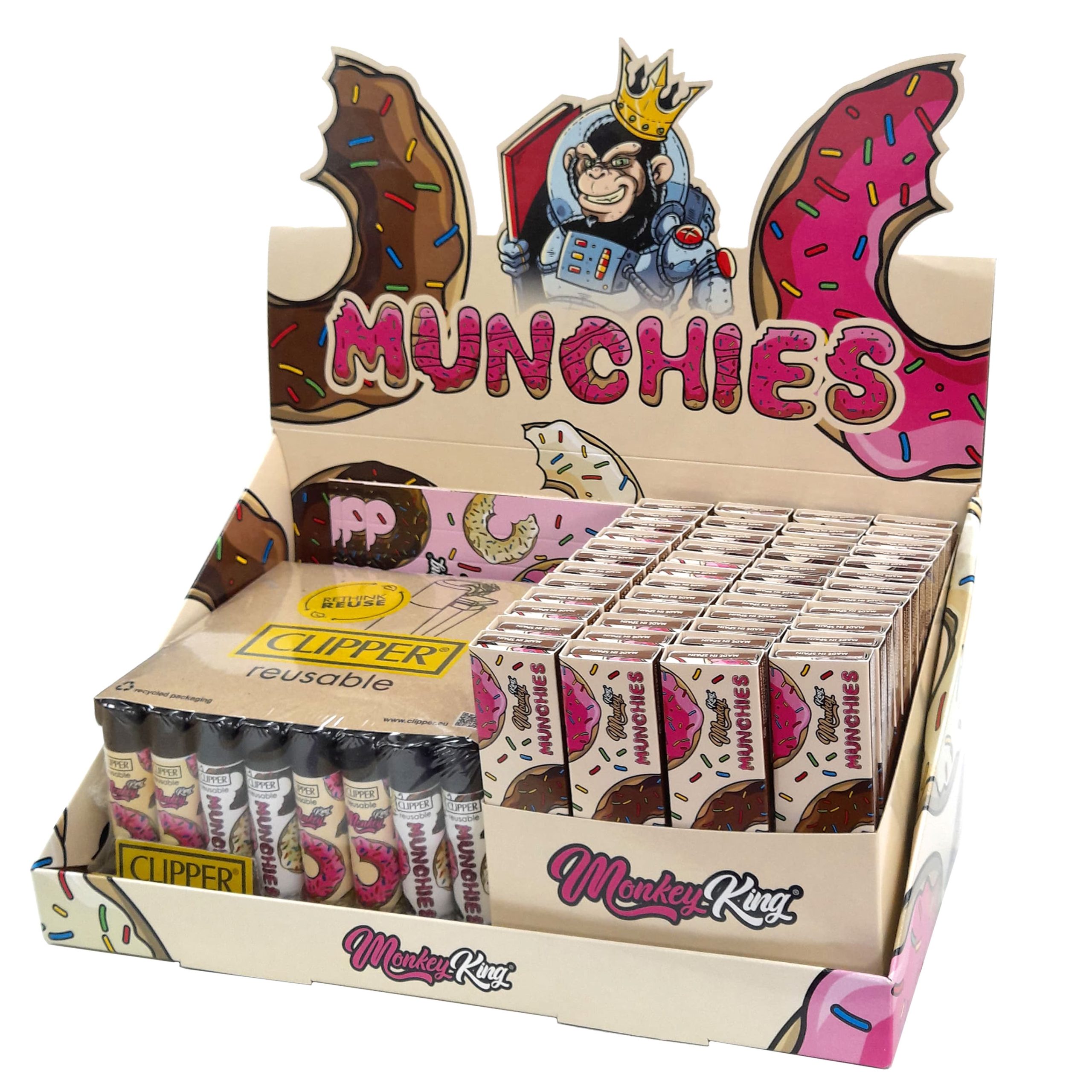 El Papel Monkey King Pack King Size Slim Tips & Clipper Munchies Unbleached ofrece un conjunto completo para quienes prefieren un papel sin blanquear que mantiene la pureza del producto y aporta un sabor neutro. El tamaño King Size Slim es perfecto para preparar enrollados finos y largos, logrando una combustión uniforme y lenta. Además, los tips incluidos facilitan el manejo y evitan que la mezcla se escape, mejorando la experiencia.