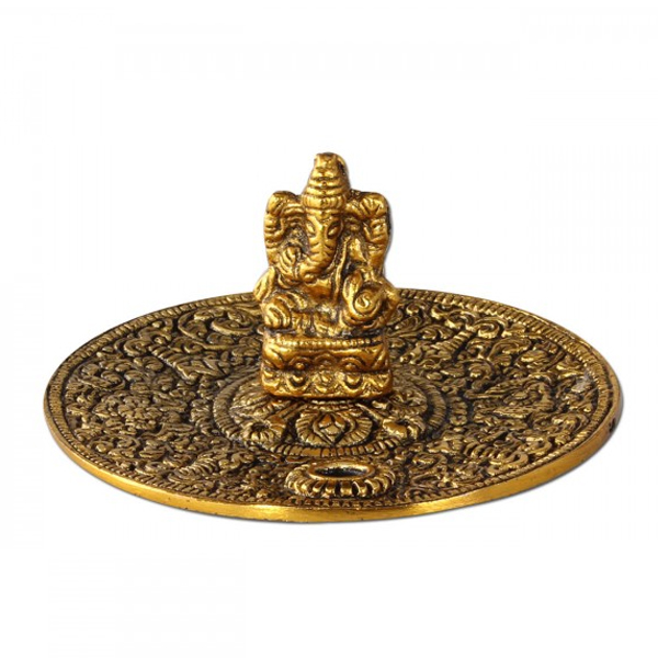 Porta Incienso Metal Ganesha Ø 11 cm. Gold